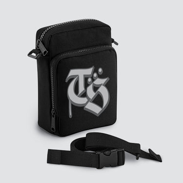 This black over-the-shoulder bag is the perfect hands-free essential for festivals, clubs, and everyday streetwear. Designed with an adjustable webbing shoulder strap for a custom fit, it features a zippered main compartment and a secure zippered front pocket to keep your essentials organised.